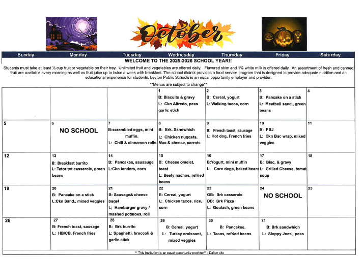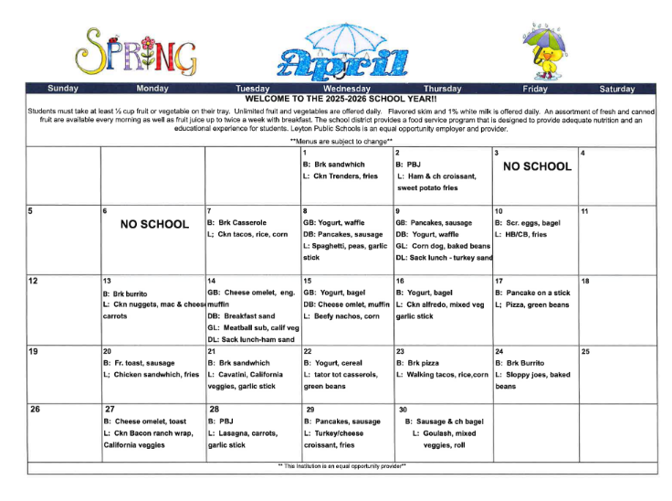 We are excited to announce that Leyton Public School's students will receive FREE meals for the 2025-2026 school year under the Community Eligibility Provision (CEP). This is for ALL students regardless of previous/current eligibility. Please note that there will still be charges for 2nd entrees and extra/snack milks. ![]()