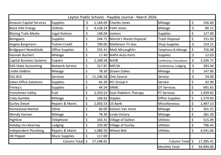 March 2026 Payable Journal